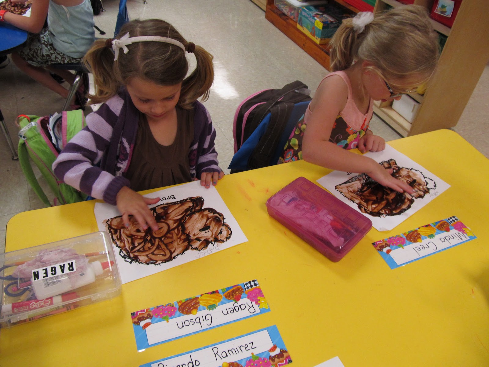 Well the first two weeks of school have gotten off to a great start. We have jumped right in with a hunt around the school for the Gingerbread man and our Brown Bear, Brown Bear unit. One of the favorite activities, aside from hunting the Gingerbread man, was painting brown bear with chocolate pudding. I have to admit, I love this activity myself. We also glued yellow feathers on yellow duck and crinkle paper on green frog. Check out photos from some of the fun things we've been doing.